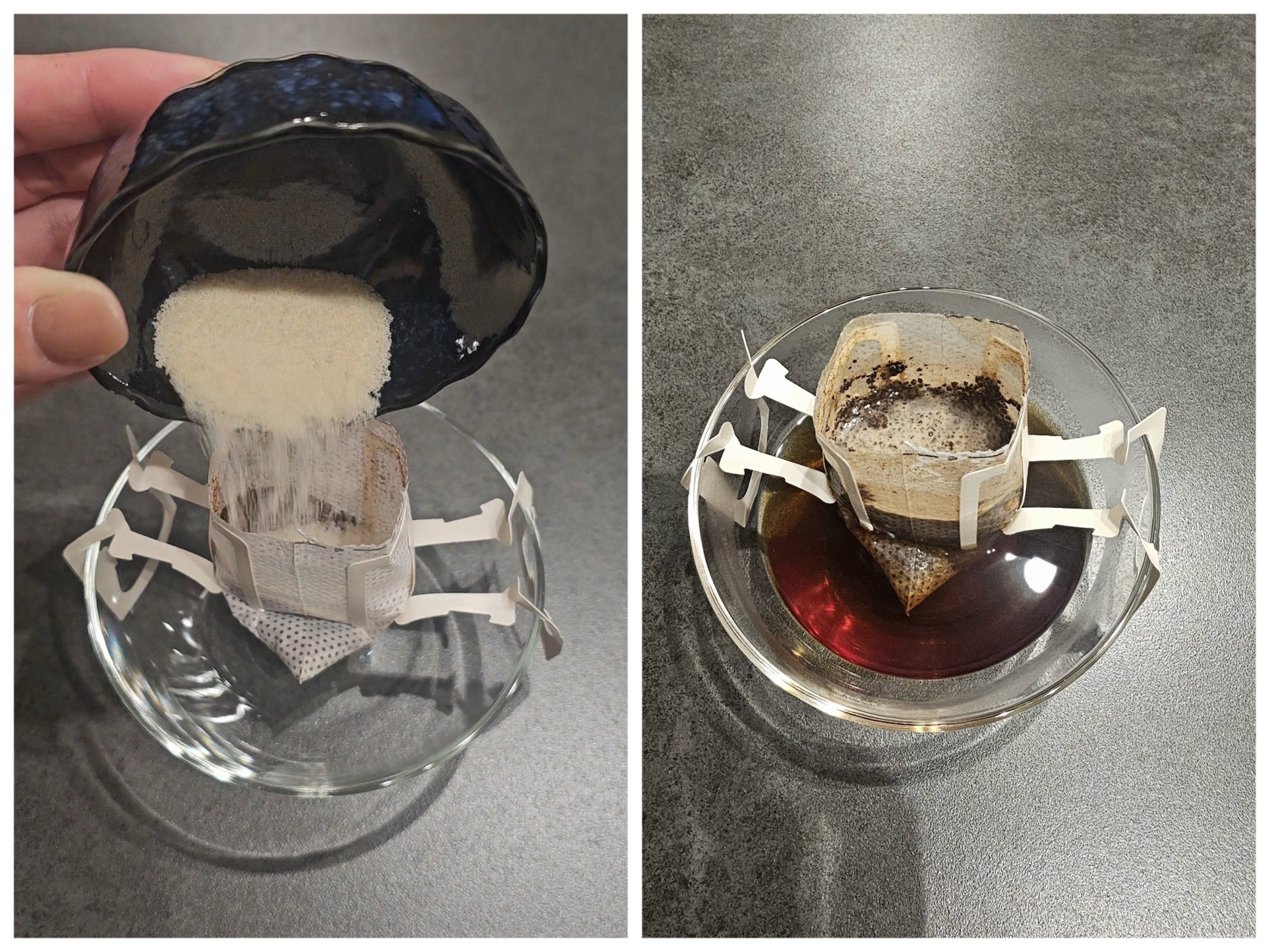 ドリップコーヒーにゼラチンを入れてお湯を注ぐだけ♪
