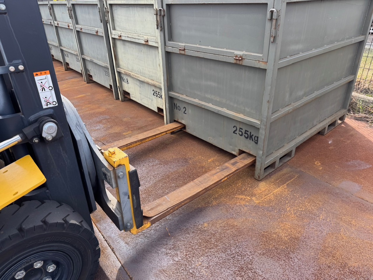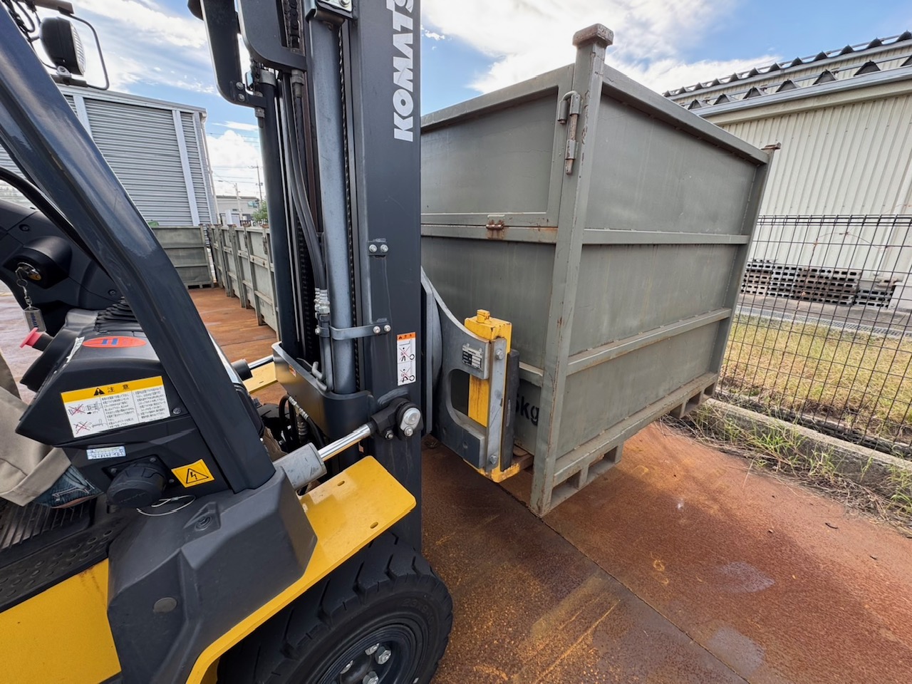 →フォークをパレット(バッカン)などの下に差し込み、持ち上げて運搬するのが基本的な使い方です。↓↓↓