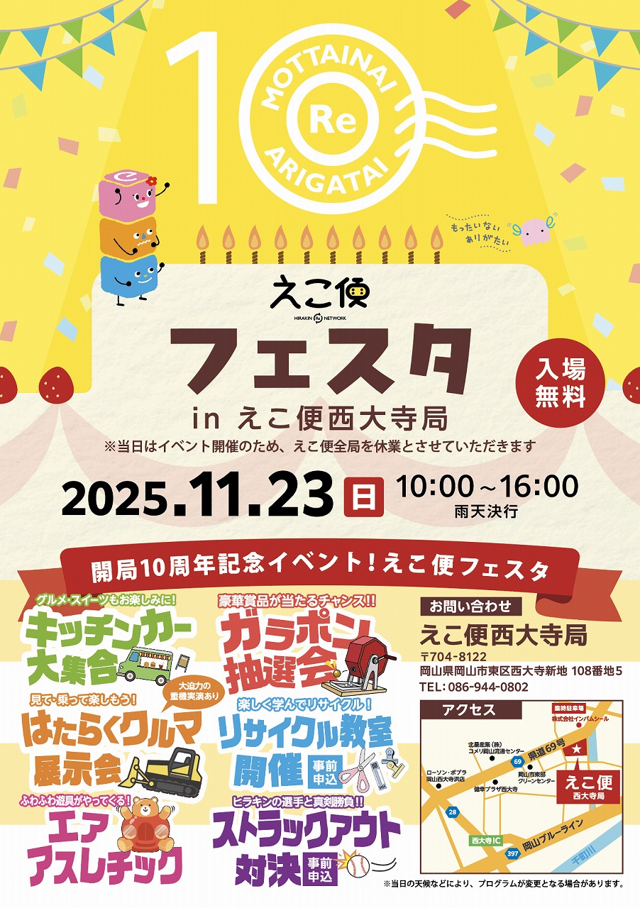 そして、2025年11月23日(日)にえこ便西大寺局にて日頃のご愛顧への感謝を込めて