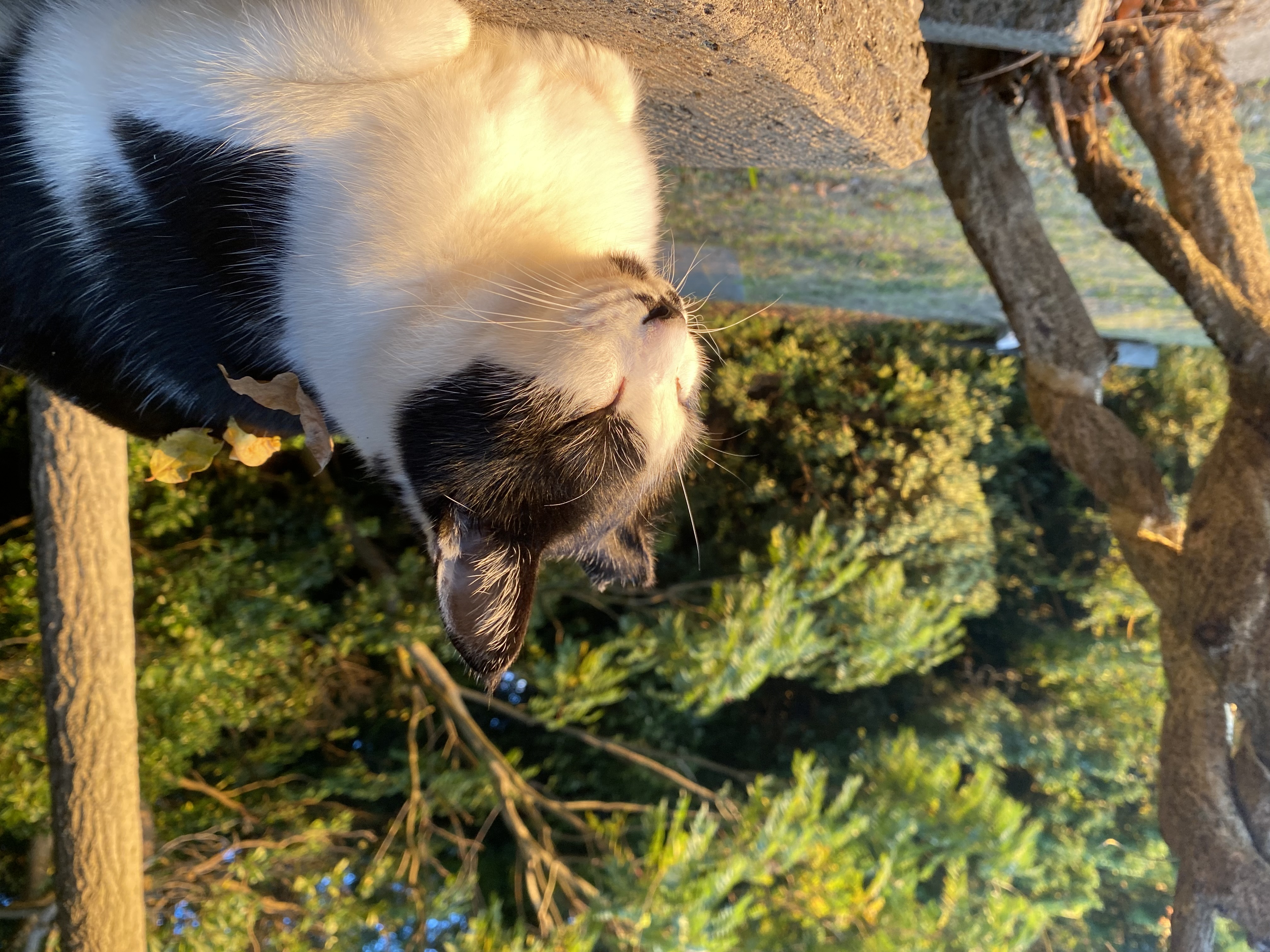 さっきまで湖のカモにパンを投げてたのに、猫が近づくと「お前は自分でとれる!」と喝を入れる人。