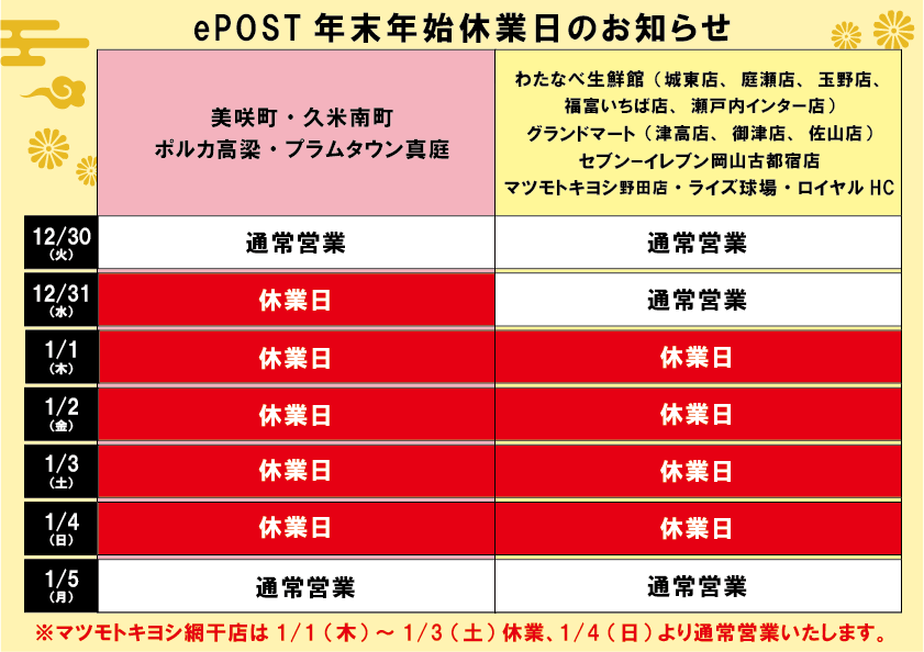 大晦日まで【ARIGATAI】気持ちを忘れずに回収いたしますので、是非お近くのeポストをご利用下さい!!