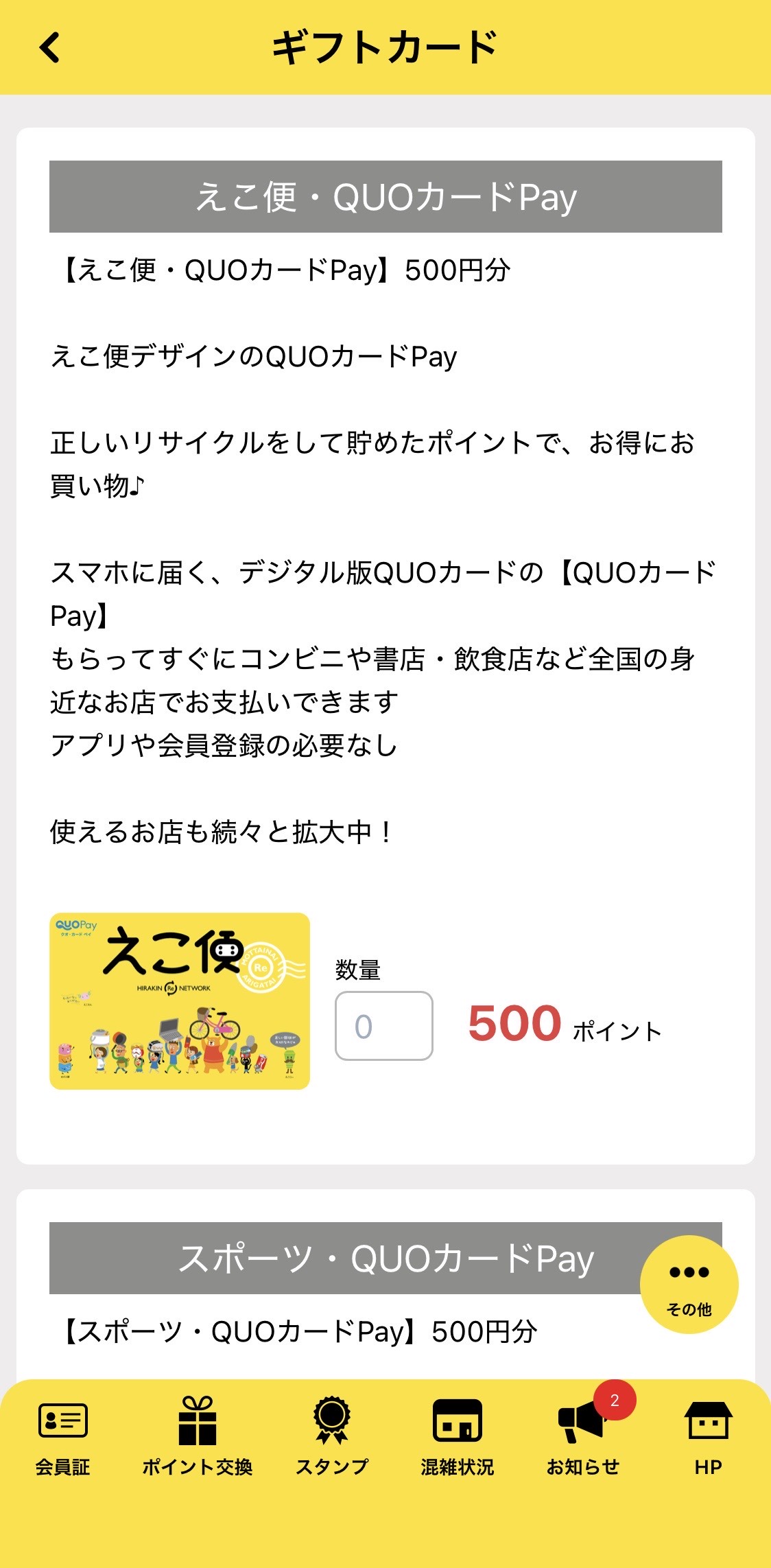 また、えこ便アプリでもQUOカードPayとして500pから交換可能です!