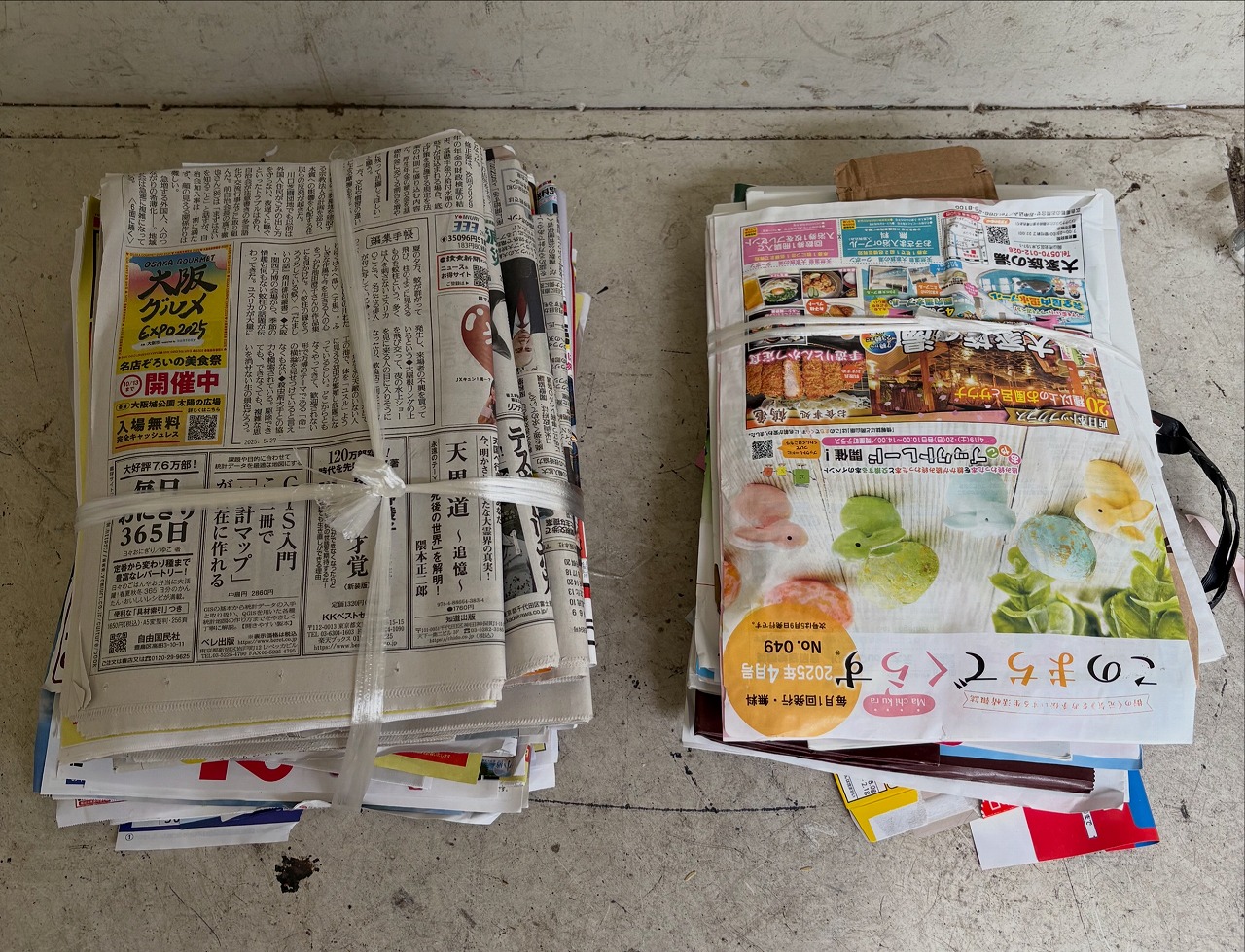 まず、「新聞・チラシ」「雑誌・ざつ紙」をお持ち込みいただく場合、下の写真の様にまとめてもらえるとARIGATAIです(^^)
