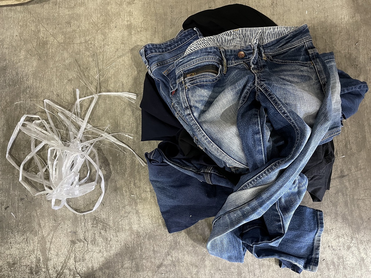 古着をお持ち込みの際にヒモで縛って持ち込まれるお客様も多いと思いますが、ヒモについても出荷前に全て除去するのでヒモで縛って持ってきていただかなくても大丈夫です!
