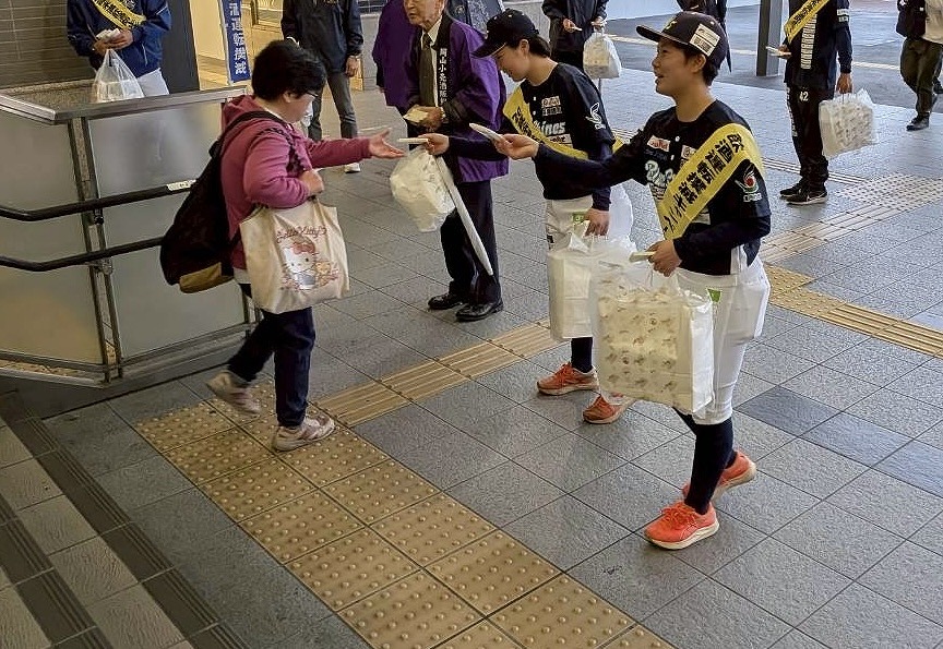今回のキャンペーンでは、岡山駅で啓発活動の一環としてティッシュ配りを行い、多くの方に受け取っていただきました。