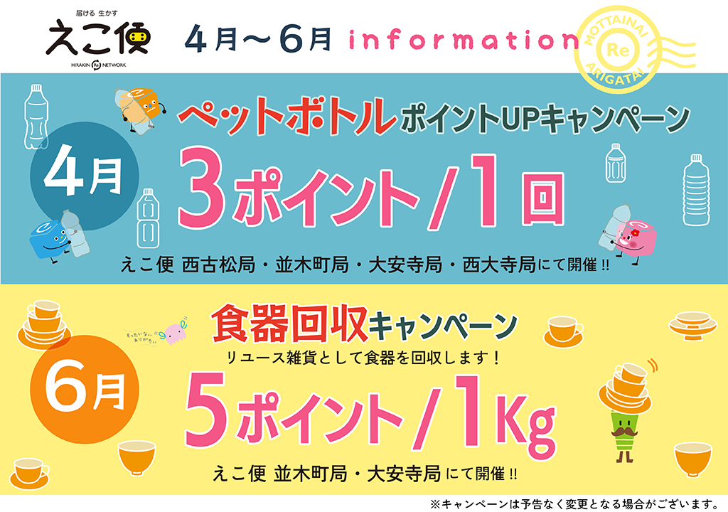 4月~6月にえこ便で行われるキャンペーンをご紹介いたします!